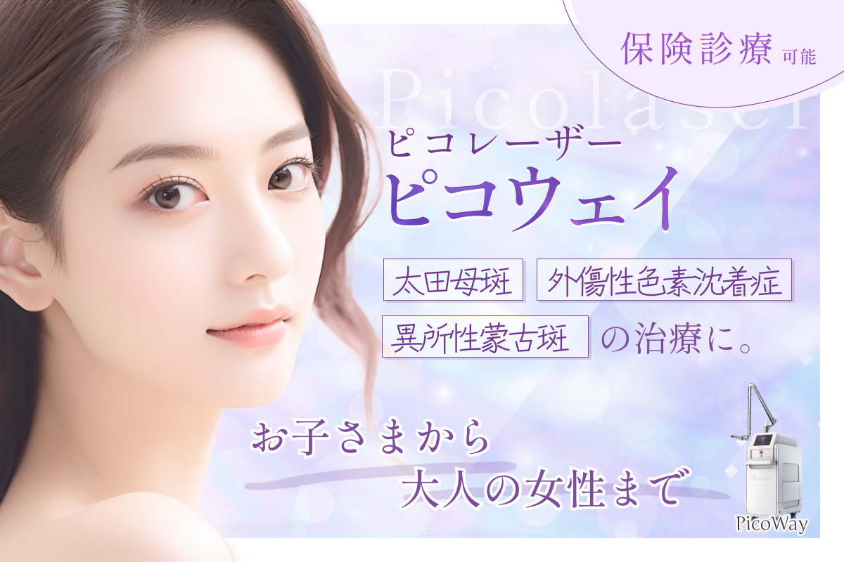 当院では、ピコレーザー(ピコウェイ)を導入し、太田母斑・異所性蒙古斑・外傷性色素沈着といった「あざ」に対する保険治療を行っています。ピコレーザーは、世界中の医療現場で使用されている、効果と安全性が確認された医療用レーザーです。
