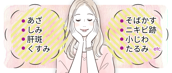 シミやくすみや肝斑の改善から、ニキビ跡の凹凸治療まで、目的に合わせた治療が可能です。
